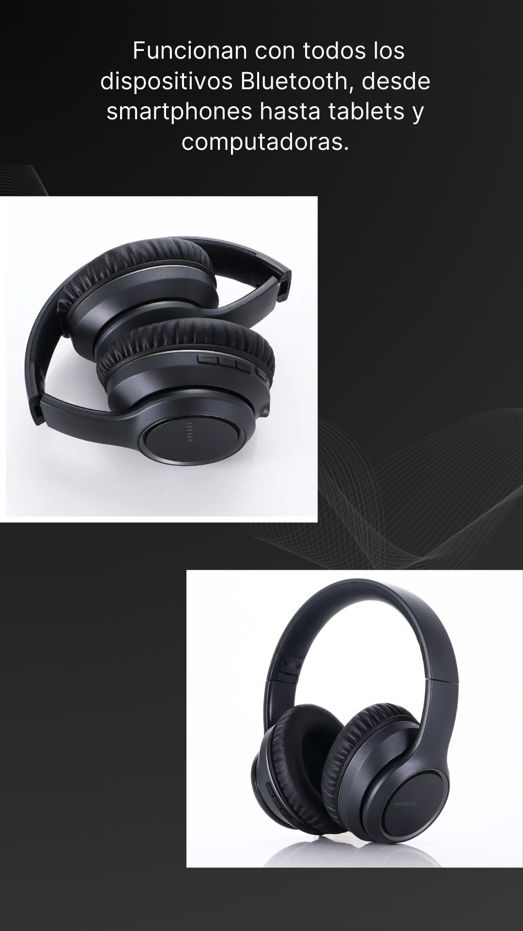 Vive una experiencia de sonido envolvente con estos audífonos Bluetooth profesionales con cancelación activa de ruido y micrófono integrado. Ideales para música, llamadas o juegos con máxima comodidad y calidad.