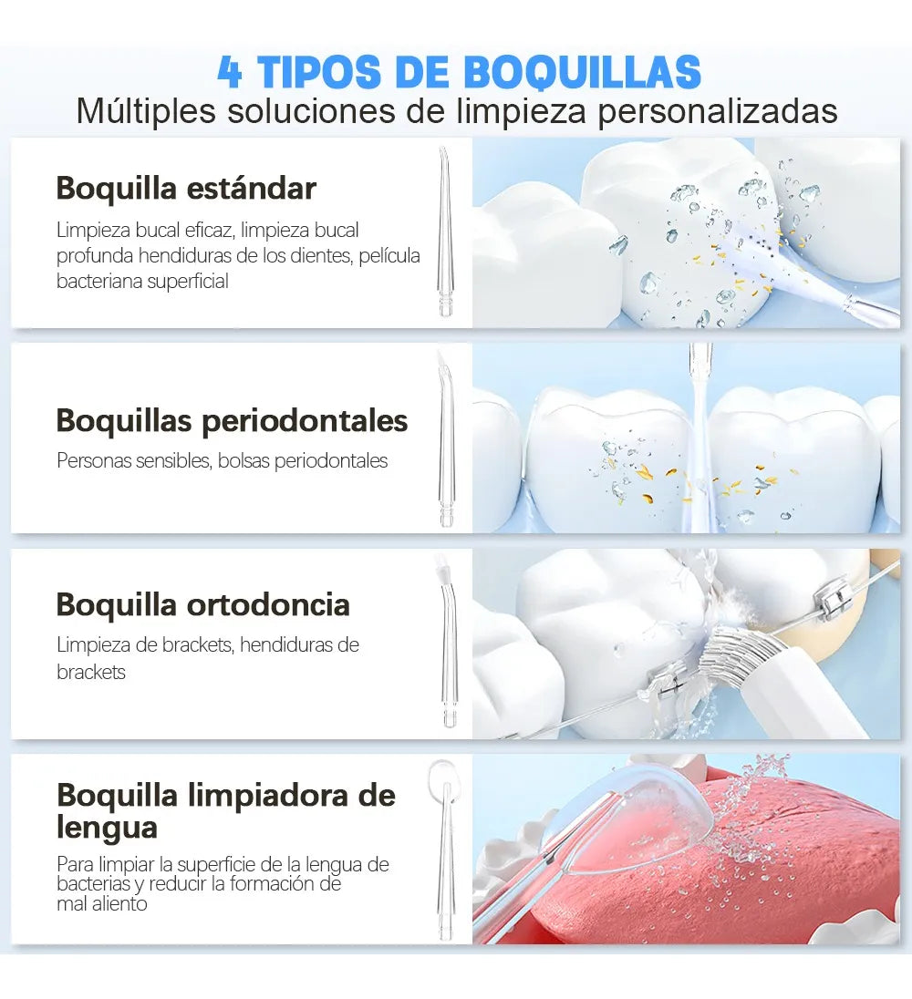 ✔ Incluye 4 boquillas intercambiables para distintos usos 🦷