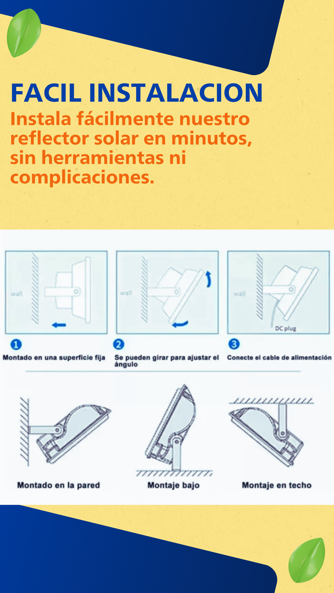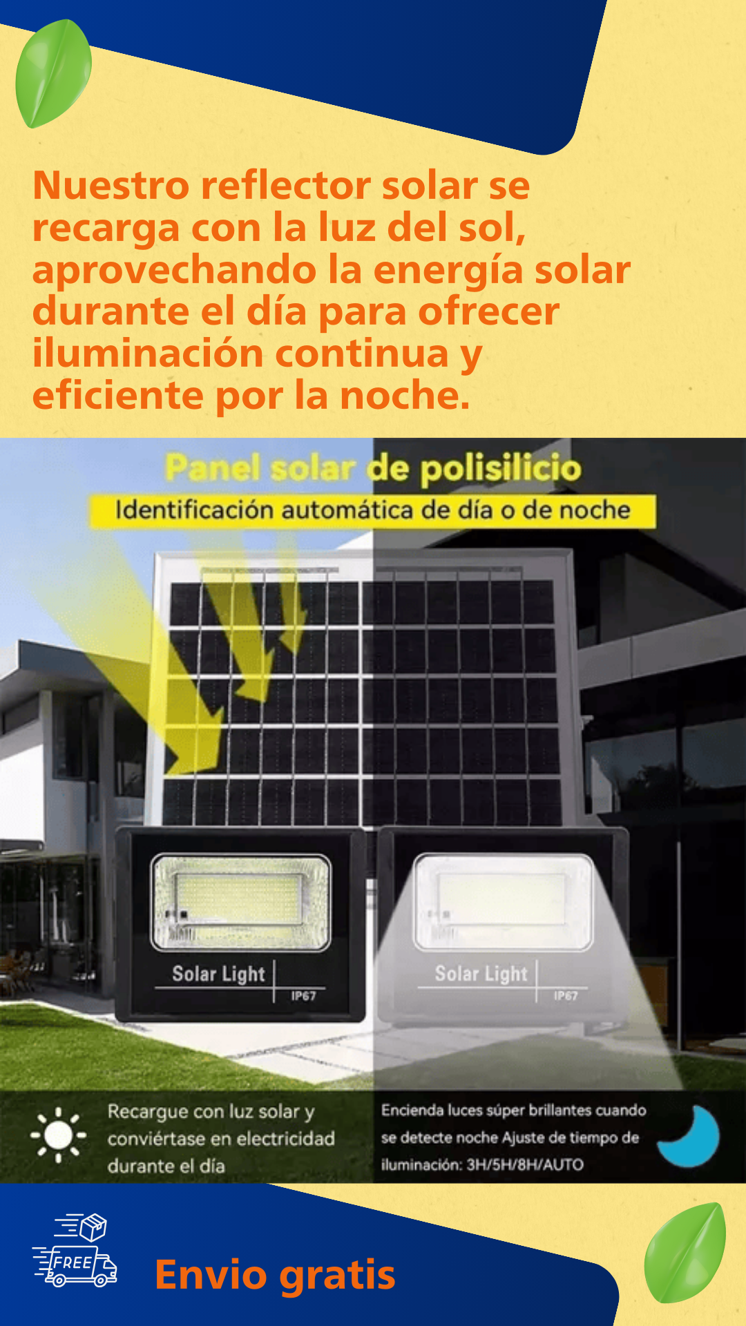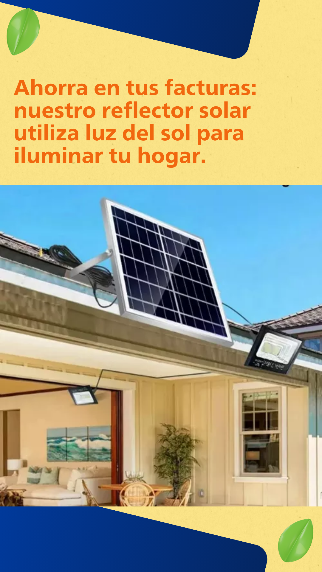 Ilumina cualquier espacio exterior con este reflector solar LED de alta potencia (100W/200W). Ideal para patios, fachadas, jardines, fincas y zonas comunes. Cuenta con control remoto para encendido, apagado y programación.